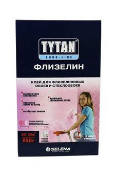 Tytan Euro-Line Флизелин - рекомендуется для всех видов флизелиновых и стеклообоев любой ширины, стандартных и под покраску. Подходит для всех типов виниловых и бумажных обоев. Изготовлен на основе модифицированных крахмалов немецкого производства концерна Emsland-Starke GMBH, антисептических и противогрибковых добавок и розового цветоиндикатора. РАЗВЕДЕННЫЙ КЛЕЙ – НЕЖНО-РОЗОВЫЙ, ПОСЛЕ ВЫСЫХАНИЯ – ПРОЗРАЧНЫЙ! Для флизелиновых обоев, раствор за 3 минуты, выдерживает до 30 м², легко наносится, без комков, устойчив к влаге и плесени.