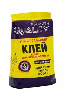 Клей обойный Quality универсальный предназначен для всех типов обоев в зависимости от его концентрации в водном растворе и для предварительной обработки стен. Быстрорастворимый универсальный клей для всех видов обоев. Безопасный состав, высокая прочность сцепления, экономичный расход.