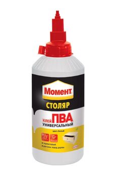 Клей для склеивания всех пород дерева, ДСП, фанеры, шпона, облицовочных материалов, картона, фурнитуры. Высокопрочный ПВА 750 г для дерева, бумаги, картона и ткани, быстро высыхает, безопасен для внутренних работ, не содержит растворителей.