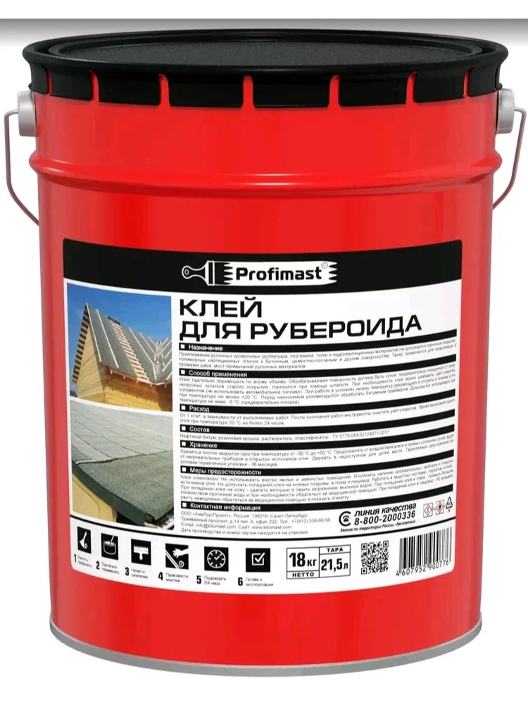 Надёжный битумно-полимерный клей для рубероида: высокая адгезия, влагостойкость, морозостойкость, готов к применению, экономичный расход.