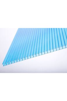 Сотовый поликарбонат ULTRAMARIN представляет собой лёгкий одно- или двухкамерный лист (в зависимости от толщины), который покрыт с обеих сторон защитной плёнкой. С верхней стороны листа наклеена брендовая плёнка с названием торгового наименования продукции, с нижней стороны – прозрачная. Плёнка с логотипом имеет яркий современный дизайн лазурного цвета и содержит в себе информацию о целевом предназначении каждой толщины материала, а также технические сведения, необходимые для правильного и качественного монтажа поликарбонатных панелей. Прочный синий поликарбонат 2,1×6 м, 6 мм для навесов и теплиц. Отличная светопроницаемость, УФ-защита, долговечность, легкость монтажа.