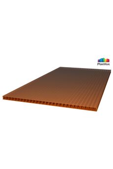 Сотовый поликарбонат ULTRAMARIN представляет собой лёгкий одно- или двухкамерный лист (в зависимости от толщины), который покрыт с обеих сторон защитной плёнкой. С верхней стороны листа наклеена брендовая плёнка с названием торгового наименования продукции, с нижней стороны – прозрачная. Плёнка с логотипом имеет яркий современный дизайн лазурного цвета и содержит в себе информацию о целевом предназначении каждой толщины материала, а также технические сведения, необходимые для правильного и качественного монтажа поликарбонатных панелей. Прочный бронзовый сотовый поликарбонат 6 мм для навесов и теплиц: высокая светопроницаемость, стойкость к УФ, легкость монтажа.