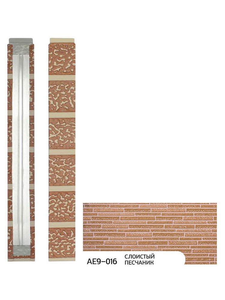 декоративная накладка соответствующая рисунку панели для оформления стыка соединения панелей между собой. Используется только в комплекте с планкой соединительная (гнездо) для межпанельной заглушки. Надёжная заглушка для межпанельных стыков 380×10×40 мм, устойчива к влаге и УФ‑лучам, легко монтируется, декоративная фактура песчаника.