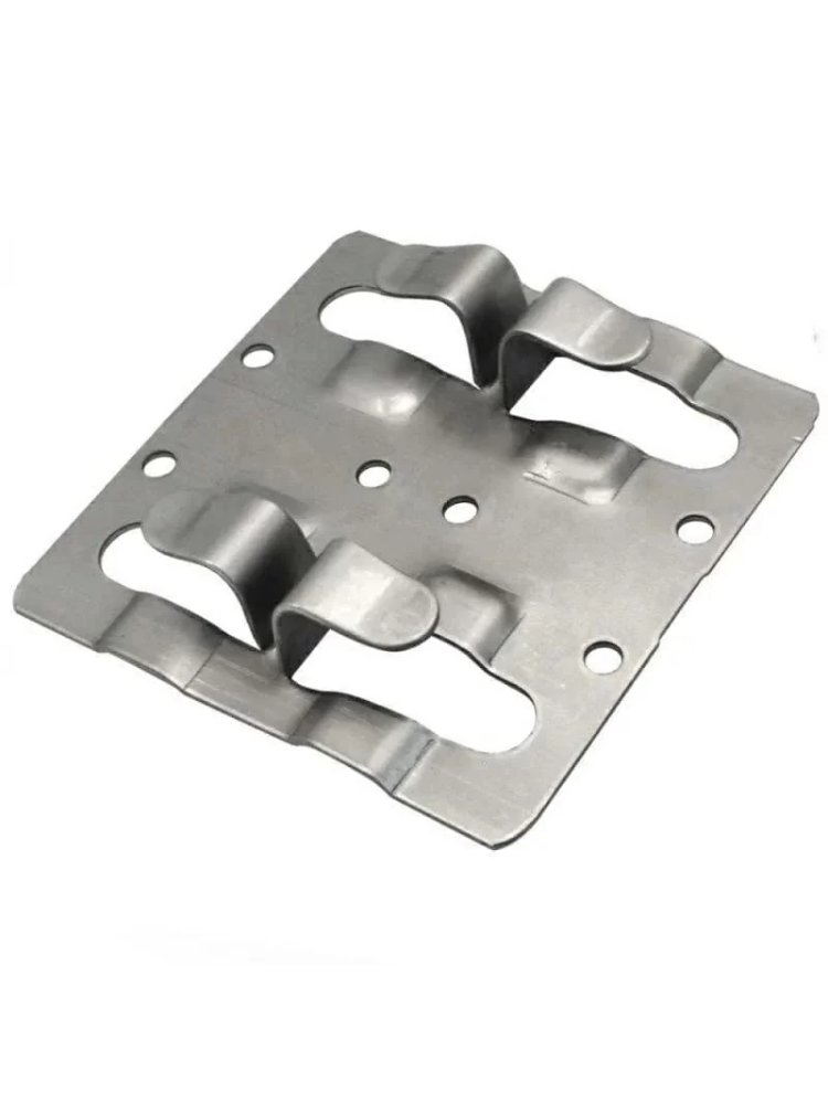 Надежное крепление для установки керамогранита и облицовочной плитки – кляммер 4-зажимный толщиной 1,0 мм с зазором 6–8 мм идеально подходит для монтажа навесных вентилируемых фасадов, обеспечивая прочность и долговечность облицовки.