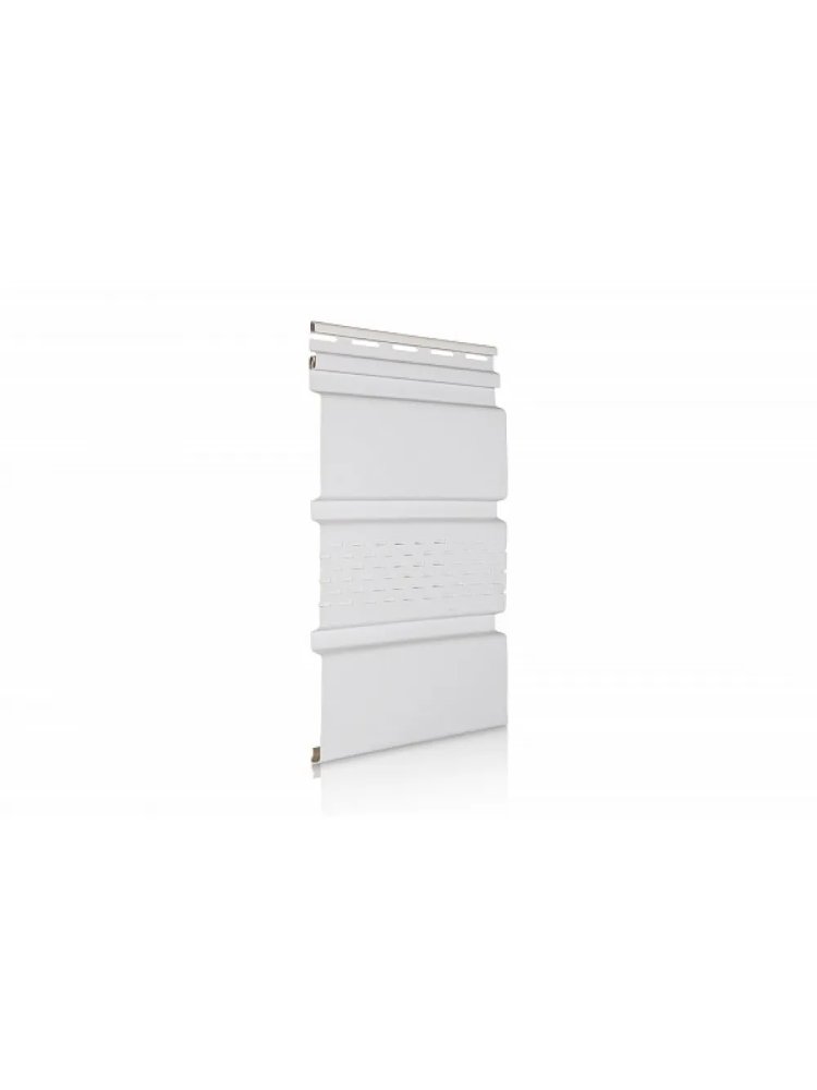 Идеальное решение для надежной и эстетичной отделки карнизов и потолков снаружи дома! Белый перфорированный софит повышает вентиляцию, защищает от влаги и образования плесени, продлевая срок службы кровельной конструкции. Отлично применяется для жилых и коммерческих зданий с любым типом фасада.