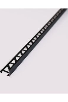 Для керамической плитки толщиной до 11,5мм. Проофиль с перфорацией "окно". Стильный чёрный профиль 2,7 м для аккуратной окантовки плитки и гипсокартона. Устойчив к влаге, прочен, легко монтируется, защищает края.