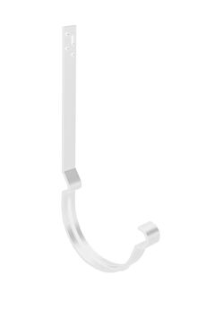 Служит для подвеса желоба на обрешетку, устанавливается до монтажа кровельного материала. Выполнен из оцинкованной стали с покрытием на основе полиэстера. Облегчает монтаж водосточной системы за счет расположения фиксатора с внешней стороны крюка, что позволяет устанавливать желоб и после монтажа кровельного материала. Стальной крючок 300 мм для крепления водосточных желобов 125 мм, оцинкован, белый, антикоррозийный, прочный, подходит для различных фасадов.