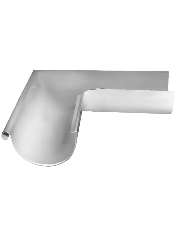 Используются для изменения направления потока воды, монтируются на внешних и внутренних углах кровли. Выполнены бесшовным способом (глубокой вытяжкой металла), что обеспечивает жесткость, эстетичность, герметичность и отличную гидродинамику. Внешний угол для водостока: оцинкованная сталь с полимерным покрытием, размер 125/90 мм, белый цвет, высокая герметичность и простота монтажа.