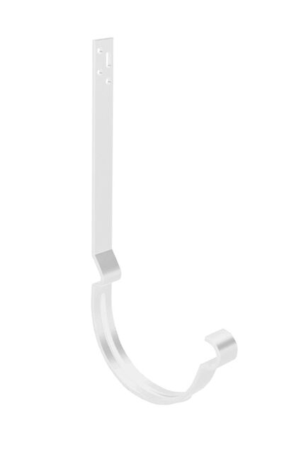 Надёжное и долговечное решение для крепления водосточных желобов на фасадах любого типа! Длинный карнизный крючок 300 мм белого цвета легко выдерживает вес водосточной системы при любых погодных условиях, подходит для монтажа желобов диаметром 125 мм и труб 90 мм, обеспечивает идеальное прилегание и аккуратный внешний вид.