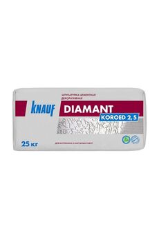Линейка цементных декоративных штукатурок для наружных и внутренних работ. Структура (короед 1,5/2,5 шуба 1,5/3,0). Минеральная структурная штукатурка на цементной основе с модифицирующими добавкам, обладающая водоотталкивающими свойствами. Основной цвет: белый Для наружных и внутренних работ. Применяется при оштукатуривании фасадов зданий по поверхности цементных штукатурок (например, КНАУФ-Унтерпутц, КНАУФ-Грюндбанд) и бетона, в системах наружной теплоизоляции зданий «КНАУФ-Тёплая стена», внут Минеральная фасадная штукатурка с фактурой короед 2,5 мм, стойкая к влаге и морозу, для внешних и внутренних работ, 25 кг.