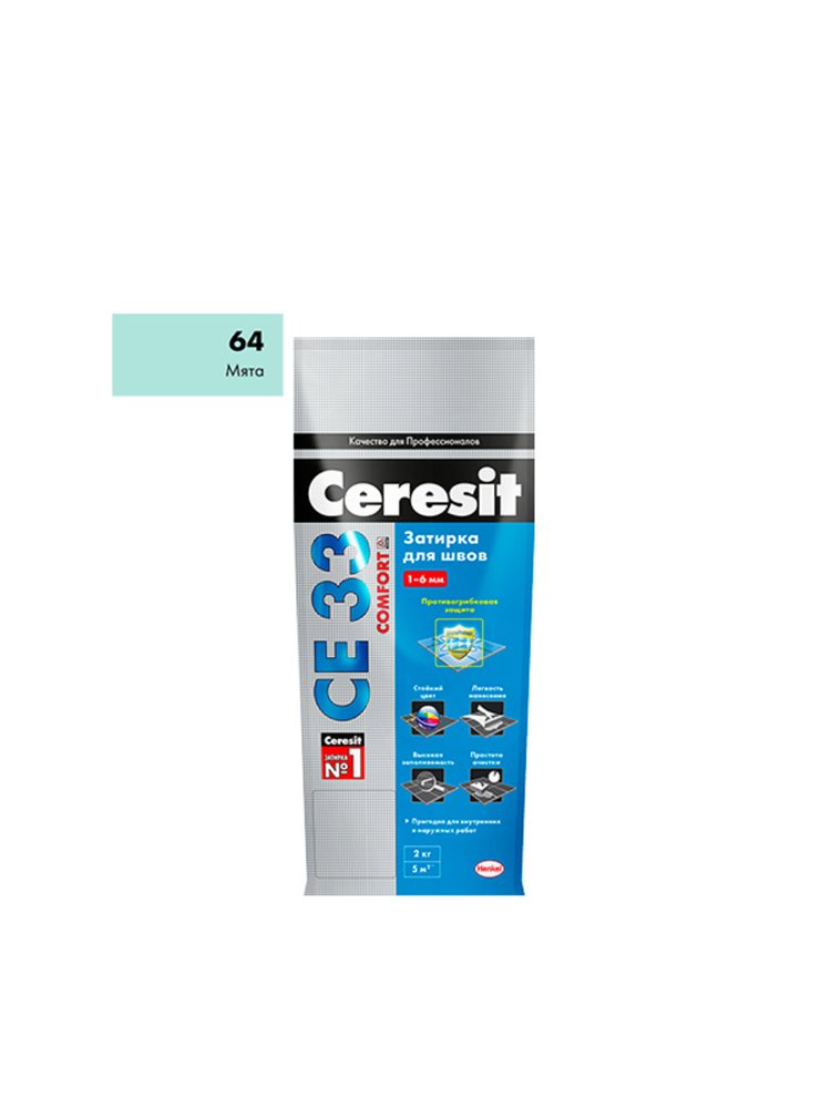 Обеспечьте безупречный внешний вид и долговечность ваших облицовочных работ с затиркой для швов на цементной основе оттенка мята (номер 64). Продукт подходит для использования внутри помещений при укладке керамической плитки, керамогранита и мозаики на полах и стенах в ванных комнатах, кухнях и коридорах.