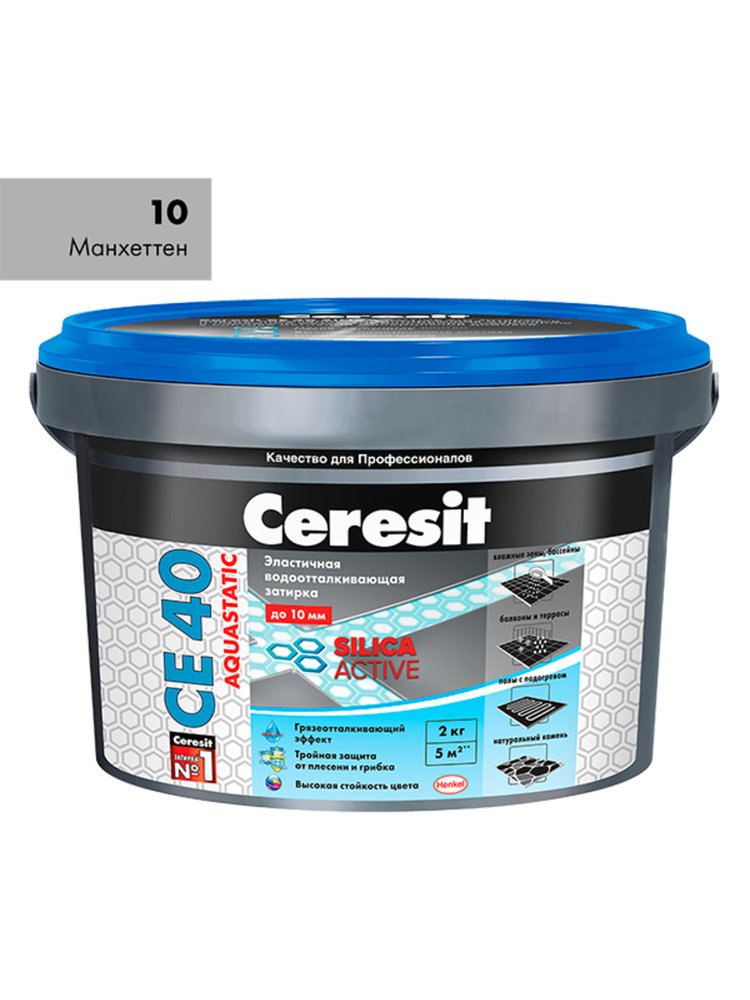 Идеальный выбор для долговечной и ровной отделки! Используйте высококачественную затирку Ceresit CE 40 Aquastatic Manhattan 2 кг (артикул 1956424) для швов между керамической плиткой, мозаикой и камнем в ванных, кухнях, душевых и на полах с подогревом. Состав обеспечивает надежную защиту от влаги, грибка и трещин, подходит для применения внутри и снаружи помещений.
