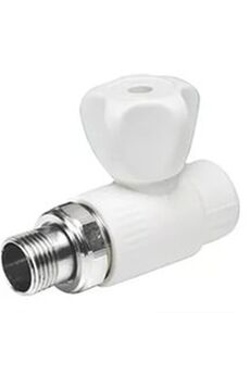 Угловой клапан для регулировки потока воды в PPR-системах, устойчив к коррозии, прост в установке, подходит для отопления и водоснабжения.