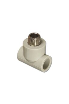 Полипропиленовый тройник с латунной наружной резьбой, выдерживает до 25 бар и температуру до 95°C. Для водопроводов и отопления.