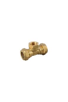 Тройник компрессионный 15×1/2"×15 мм из латуни для надёжного и герметичного соединения труб в системах водоснабжения и отопления.
