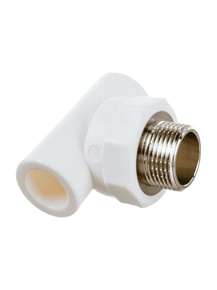 Комбинированный тройник 32х3/4'', прочный PPR корпус, латунная резьба, устойчивость к коррозии, рабочее давление до 25 бар, срок службы до 50 лет.