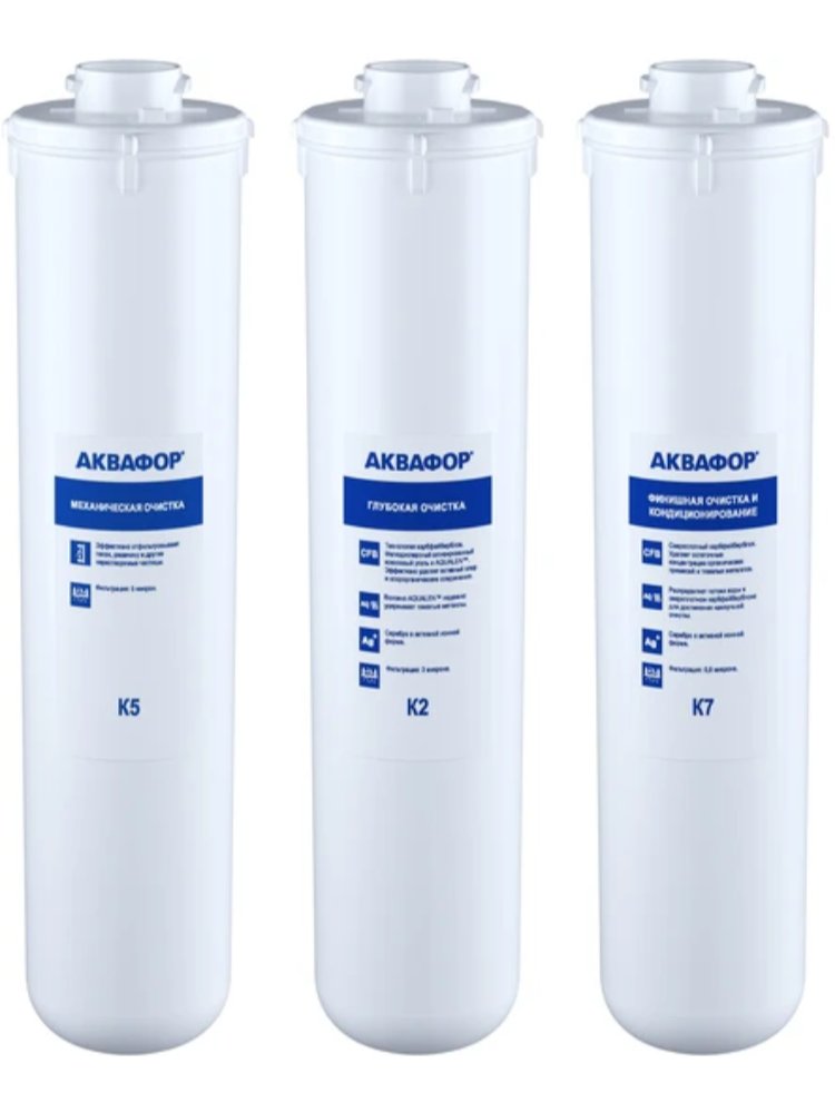 • Тип: комплект картриджей К5-К2-К7 для системы проточной водоочистки;