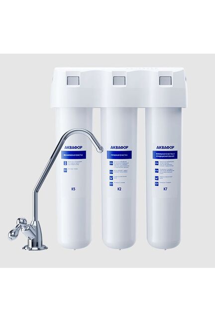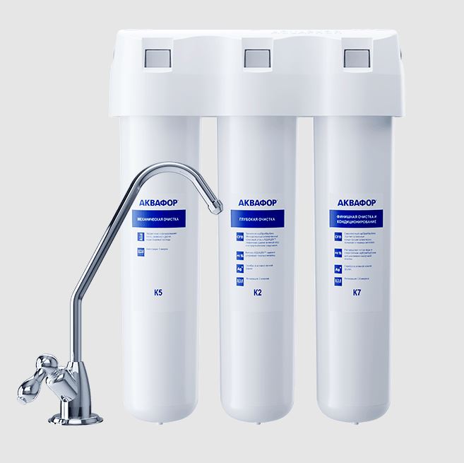 Аквафор Кристалл А — фильтр для глубокой очистки питьевой воды с повышенным содержанием механических примесей. Кристалл А удаляет практически все загрязнители, которые могут встретиться в водопроводной воде. Первый - полипропиленовый - картридж защищает модули глубокой очистки от закупоривания, тем самым продлевая срок их жизни и снижая расходы на обслуживание фильтра. Рекомендуется для воды с большим содержанием песка, ржавчины и других механических примесей. Картриджи меняются не реже раза в год, однако при повышенной нагрузке (например, при аварийных сбросах загрязнителей в водопровод) необходимо заменить их раньше. Первый картридж меняется раз в 3-6 месяцев в зависимости от качества воды. Компактный фильтр обеспечивает чистую питьевую воду без запаха и примесей, легко монтируется под мойкой и экономит место на кухне.